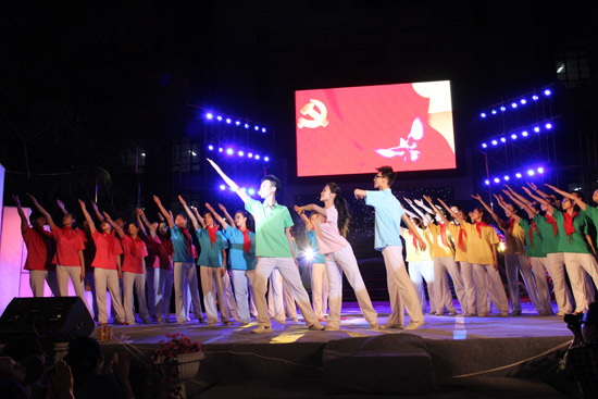 “青春共筑中国梦”纪念五四运动94周年暨“五月的鲜花—永远跟党走”大学生艺术节是一项融思想性、艺术性、群众性与专业性为一体的校园文化品牌活动,旨在树立鲜明价值导向、引领高雅文化风尚、展现青春师大风采。为坚持节俭办活动的原则,本次艺术节晚会所有演出的舞台布景及有关服装、道具均为学校近年来大型活动废弃物品的再次利用。