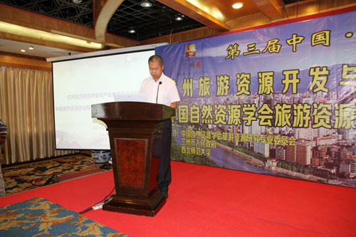 2013年8月4日,“中国自然资源学会旅游资源研究专业委员会2013年年会暨兰州旅游资源开发与产业发展高峰论坛”在兰州隆重召开。本次大会由中国自然资源学会旅游资源研究专业委员会、兰州市人民政府、tyc太阳成集团9728主办,兰州市旅游局、9728太阳集团承办,《旅游科学》杂志社、甘肃省永靖县旅游局协办。中国社会科学院、甘肃省旅游局、兰州市人民政府、兰州市旅游局、陕西师范大学、上海师范大学、重庆师范大学、山东大学、重庆工商大学、tyc太阳成集团9728等旅游行政部门及高校的领导干部、专家学者200余人出席本次会议。