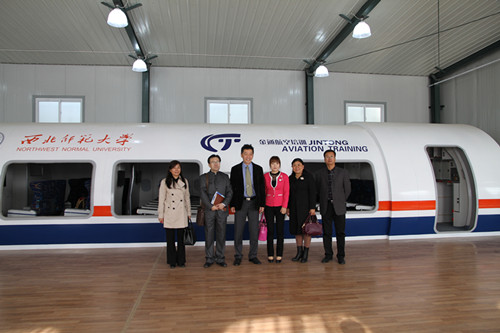 会后,蘇主任一行参观了我院空乘专业学生民航模拟客舱实训教室。