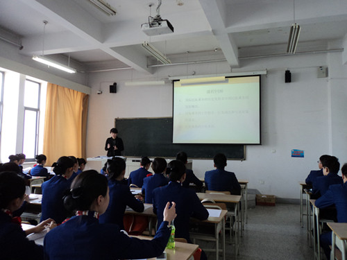 比赛过程中,每位参赛老师都通过精彩的语言、富有感染力的表情动作及生动有趣的讲解,把各自的教学特色展示的淋漓尽致。柴亚林老师讲授《基础日语Ⅱ》课程,他的整个授课过程严密清晰而且内容丰富,总结了形容词的基本用法;刘涛涛老师在《民航乘务员基础教程》中联系自身经历深入浅出的讲解了民航旅客运输重要术语、乘机的流程、旅客运输凭证、旅客运输规定、行李分类、旅客投诉等;在《管理学原理》授课过程中,彭睿娟老师系统讲解管理思想史和古典管理理论;王力老师在《西方文化概论》讲授中,生动有趣的展现了意大利的作用与艺术的复兴及人文主义思想家相关知识;在《服务心理学》教学中,种媛老师以宾客个性心理与消费行为为切入点讲解了需要、动机与消费行为理论;夏冰老师在《宏观经济学》课程中通过理论联系实际,将储蓄率概念、储蓄率持高与过低的影响等一个个枯燥理论演绎在学生面前。