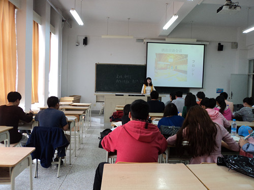 比赛中,每位参赛教师认真备课、精心设计教学课件,精神饱满的参加比赛,显示我院青年教师的良好风貌。冯玉新老师在《经济地理学》讲述中,深入浅出的课堂语言特色从中心地理论产生的背景与目的、中心地理论的有关基本概念等方面阐述了克里斯塔勒的中心地理论。万抒佳在《民航服务英语Ⅳ》授课中,按照空中乘务员的工作程序完整的在模拟舱内进行民航服务英语演练,增强了学生的语言运用能力以及专业水平!整个授课过程能与同学们充分互动,调动了同学们的学习积极性。周婧老师在《艺术审美》讲授中,生动有趣、语言准确恰当的讲述了园林概述、园林美学的三个方面、中国园林要素、以及常见的造园手法。张亚芳《旅游酒店管理》以丰富的案例和设计精美的课件展示并讲授了酒店客房的类型、酒店客房设计的原则;酒店客房设计的发展趋势,以及酒店客房设计的基本内容与要求。在《酒店日语会话》讲授过程中,任赟娟老师富有感染力的表情、诙谐幽默的语言从预约酒店的日语表达入手,以酒店日语对话部屋を予約する为中心,重点讲述在酒店大厅前台的工作人员使用日文完成电话预约时,专有名词以及日语敬语的正确使用,并补充说明影响成功预约的关键因素和日文电话预约流程。裴莉老师在《旅游英语Ⅱ》中系统完整的的讲授了导游的概念、导游的主要职责、地陪和全陪的具体工作内容以及司机向导的职责,并做了相关听力练习。在《综合英语Ⅳ》刘钊老师讲授了英语中绚丽多彩的杂乱无章现象一课及本课生单词的用法,长难句的翻译以及段落大意。齐颖新老师在《基础日语》授课过程中思路严密清晰,语言流畅的讲解ゴールデンウィーク、ディズニーランド、とか等单词以及变化句型分为~なります、~します两种,并强调两者的相同与不同之处以及二者的应运。王艳林老师的《综合英语Ⅱ》讲述了《Christmas Spirit》一文的重点词组、近义词组及课文翻译;最后归纳总结了时事词汇、 圣诞主题的句型和词组,补充用于写作的谚语、她在整个授课过程中专业性语言特点突出,运用恰当得体。