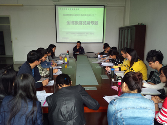 4月25日下午,我院旅游管理专业硕士研究生系列专题研讨活动第二场在10C502室顺利举行,本次专题研讨活动主题为“全域旅游发展”,研讨活动由把多勋教授主持。我院研一、研二的全体研究生参加了研讨活动。