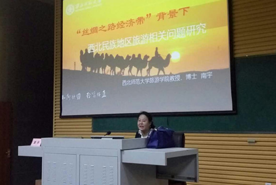 本次讲座南教授以旅游产业的发展为主线展开,主要介绍了四方面的内容:一是实施丝绸之路复兴计划,构思新丝绸之路经济带的相关理论研究及对西北旅游产业发展的重要意义;二是西北民族地区文化与旅游产业融合机制、发展路径和模式研究。结合西北地区的旅游特色,提出了相关的发展理念及发展模式;三是“丝绸之路经济带”与西北旅游产业发展互动关系研究;四是打造甘肃省丝路黄金段的对策思考。