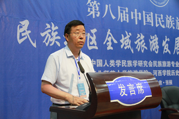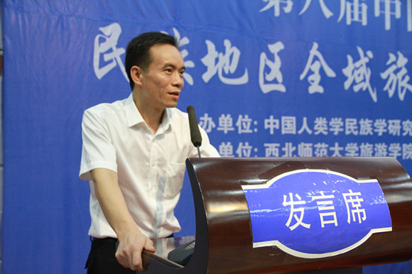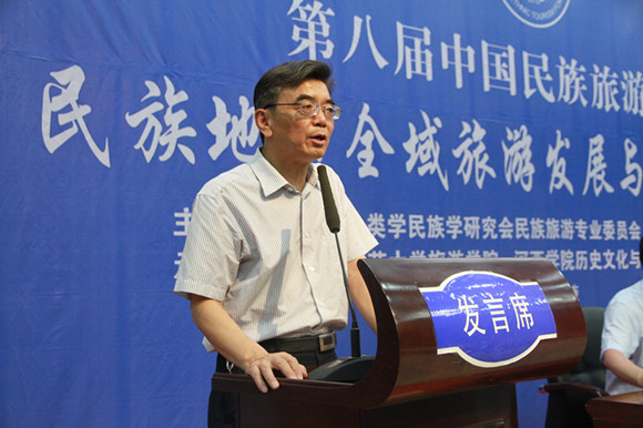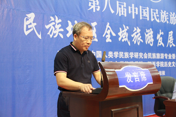 中国人类学民族学研究会民族旅游专业委员会主任、桂林理工大学9728太阳集团院长吴忠军教授出席开幕式并致辞