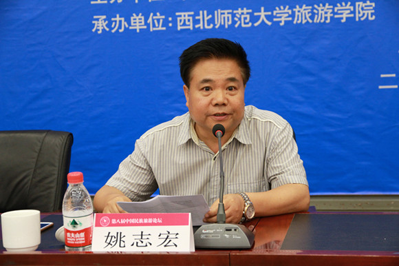 云南大学工商与旅游管理学院院长吕婉青教授代表第九届中国民族旅游论坛承办方表态发言