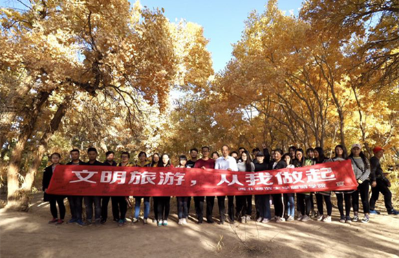 2017年10月13日-16日,我院2015级旅游管理卓越班全体学生及部分研究生共36人,在我院梁旺兵教授、欧阳正宇副教授、彭睿娟老师的带领下赴敦煌开展了为期四天的“丝绸之路经济带甘肃段文明旅游宣讲”暨河西走廊大景区建设调研及实践教学活动。