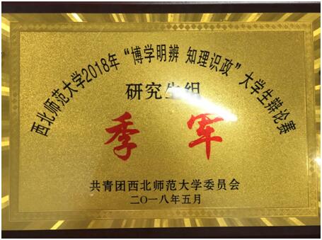 唇枪舌战,论尽是非黑白;证史证实,辨析天下万物。此次辩论赛研究生组共有13支代表队、78名辩手,13场辩论赛。由我院研究生组成的“诗与远方”辩论队经过三轮激烈角逐,最终获得本次“博学明辨,知理识政”大学生辩论赛季军,我院研究生陈芳婷获得最佳辩手。