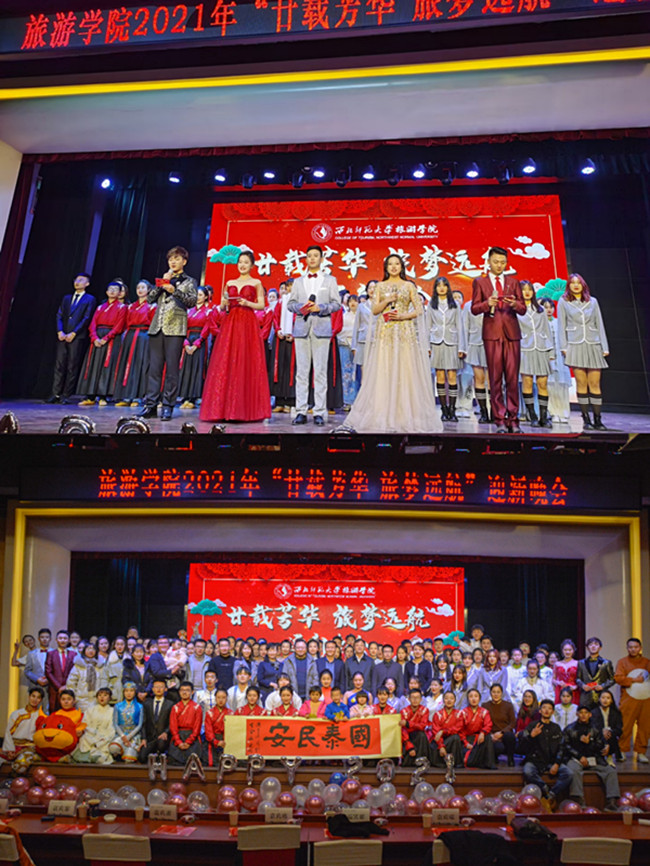 2020年9月份成立的9728太阳集团“旅之声”合唱团和“云霁”礼仪队在本次晚会精彩亮相,合唱团用曼妙的歌声唱响旅院学子的青春,礼仪队用优雅的步调展现旅院学子的独特魅力。