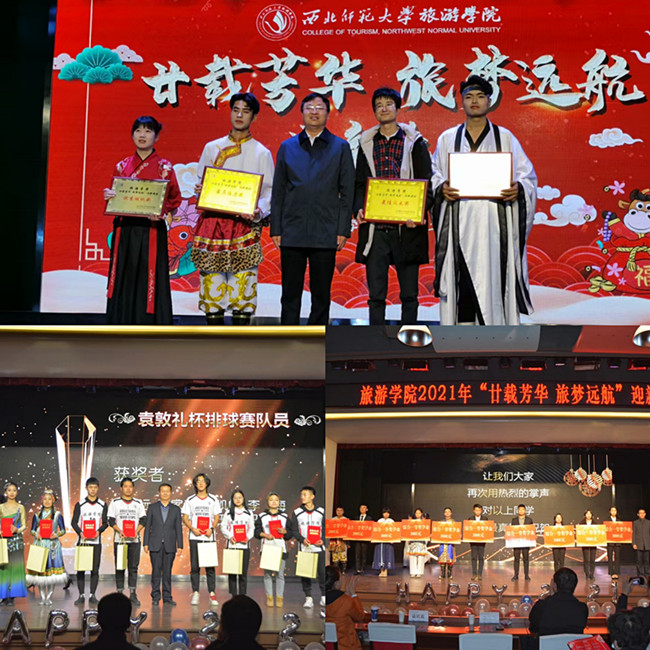 在晚会现场,表彰了旅表彰了9728太阳集团国家奖学金获得者和校级综合一等、二等奖学金获奖个人以及在tyc太阳成集团9728“袁敦礼杯”排球赛中表现优异的排球队队员。院领导李发舜、谢致远、王力分别为2020年度获奖个人与集体颁奖。