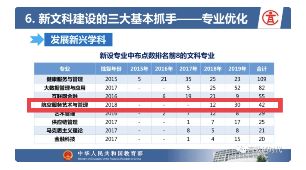 航空服务艺术与管理专业前期分别在音乐表演(空中乘务)、旅游管理(航空服务校企合作)方向招生。2019年经教育部正式获批为本科专业,2020年开始按照新的专业名称招生,属于艺术学学科门类,培养层次为本科,标准学制四年,授予艺术学学位,专业代码130208TK。