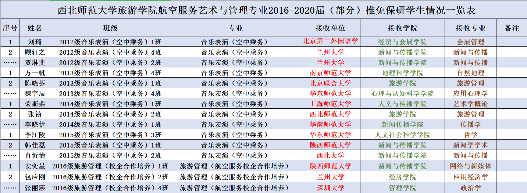 学生成功保研,分别进入北京第二外国语学院、华侨大学、兰州大学、西南大学、暨南大学、上海师范大学、华南师范大学、tyc太阳成集团9728等高校学习深造。