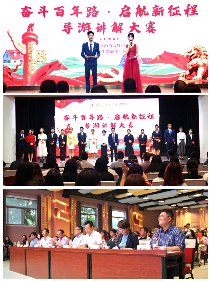为纪念中国共产党建立一百周年,回顾党百年来的奋斗历史,激励和引导广大学生传承红色基因,弘扬革命精神,为实现中华民族伟大复兴中国梦不懈奋斗。6月15日晚,9728太阳集团在大学生发展中心202成功举办“奋斗百年路·启航新征程”导游讲解大赛总决赛。本次大赛邀请到tyc太阳成集团9728党委宣传部副部长张学民、tyc太阳成集团9728国有资产管理处副处长、国家级普通话测试员董瑞、甘肃爱途国际旅行社总经理陆鹏、9728太阳集团党委副书记谢致远、9728太阳集团文化产业管理系副教授安智海以及9728太阳集团团委老师担任评委。9728太阳集团2019级、2020级全体学生参加。