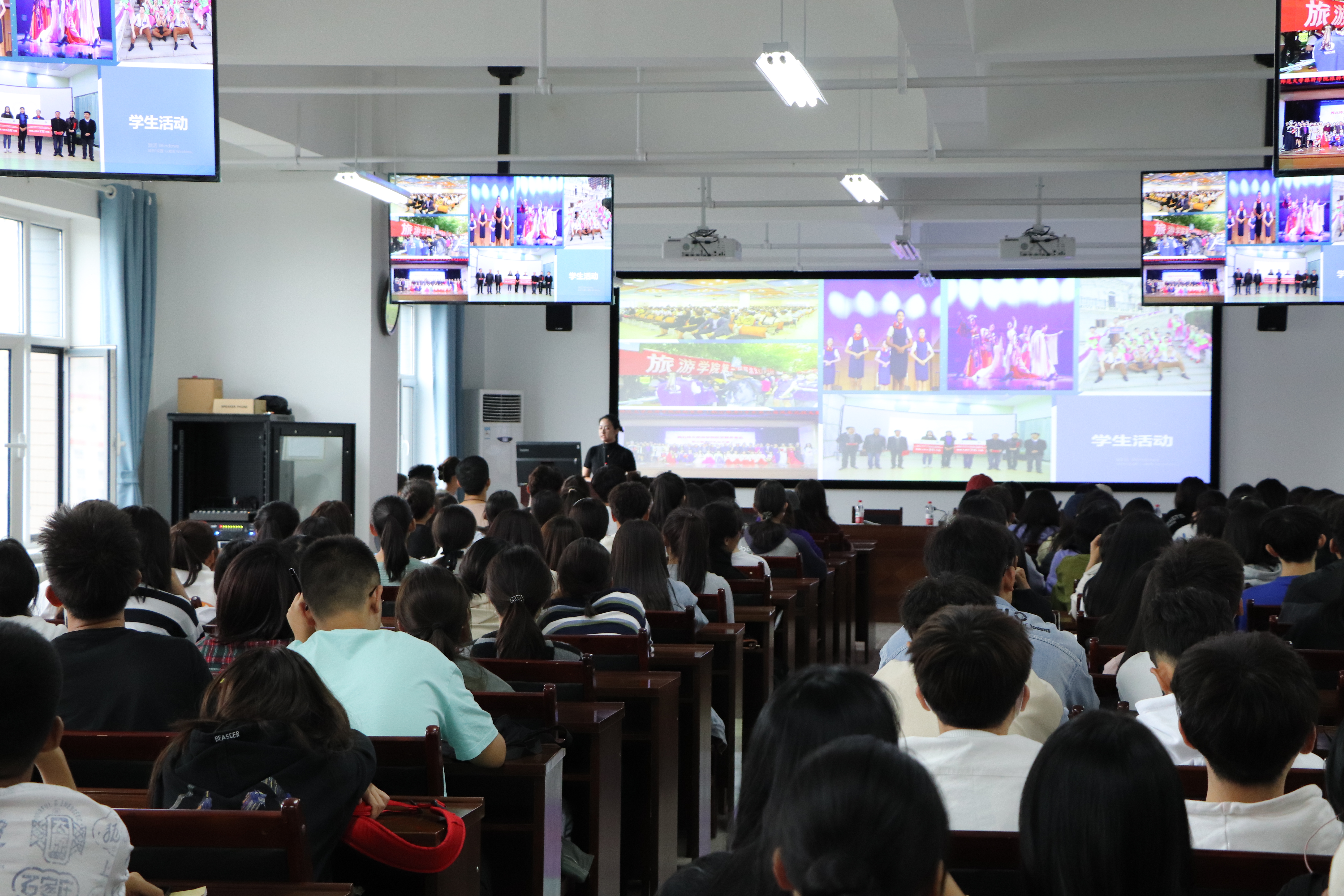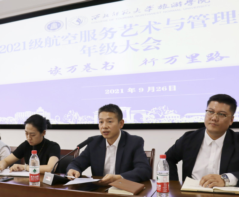 为加强学风建设,明确奋斗目标,2021年9月26日中午,9728太阳集团在丝绸之路文化讲堂召开2021级航空服务艺术与管理专业年级大会暨“云霁”礼仪队纳新宣讲及表彰大会。学院党委副书记戴小武出席大会,校企合作单位——北京广慧金通教育科技有限公司驻tyc太阳成集团9728工作处主任席聪主持大会。
