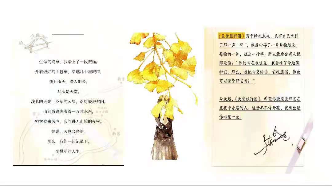 接着张莹莹朗读了正在上海迪士尼实习的齐凤同学为青兰书院寄来的一封书信。齐凤分享了在上海见识的种种更加开阔的世界;谈到书籍,作家星野道夫充满勇敢智慧的品质,《旅行之木》是她最近感触最深的作品;谈到书院,她因纯粹与热爱加入青兰书院,因交流和共享与书院结下情缘。齐凤同学想念大家,从迪士尼带了20张小贴纸寄来,并期待日后和书友见面。