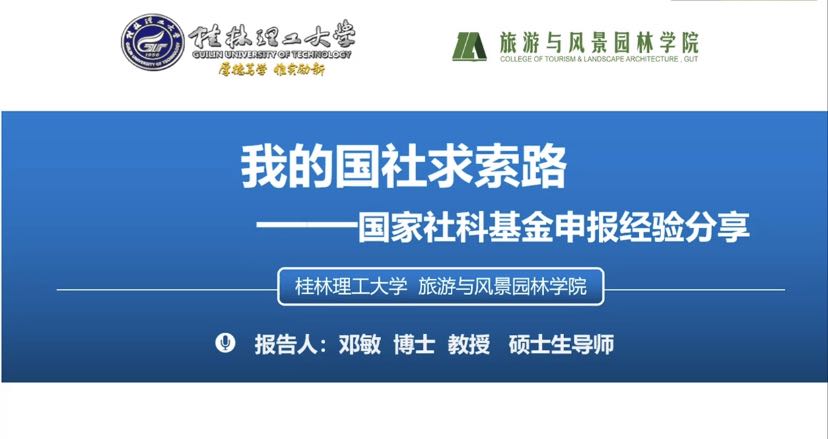 2021年12月1日晚上,应学院邀请,桂林理工大学旅游与风景园林学院邓敏教授为我院师生作了题为“我的国社求索路—国家社科基金申报经验分享”的专题报告,报告会由副院长柴亚林老师主持。