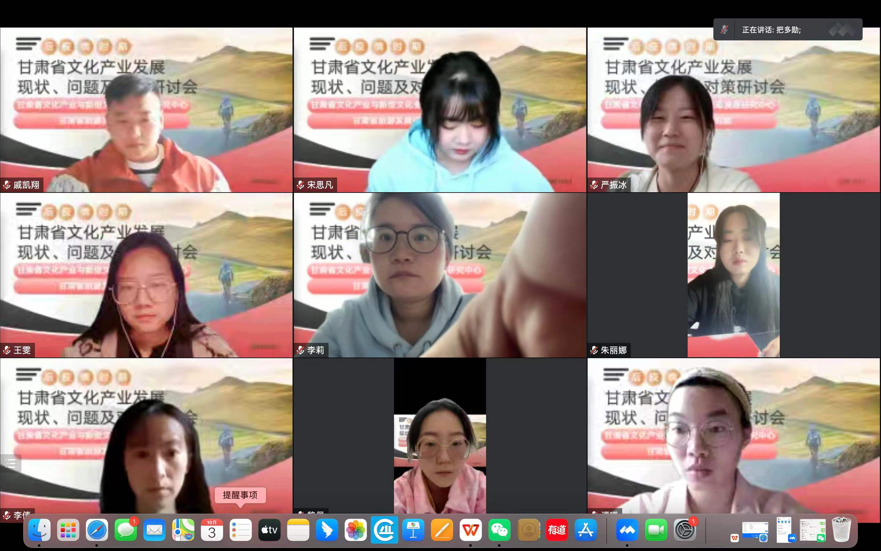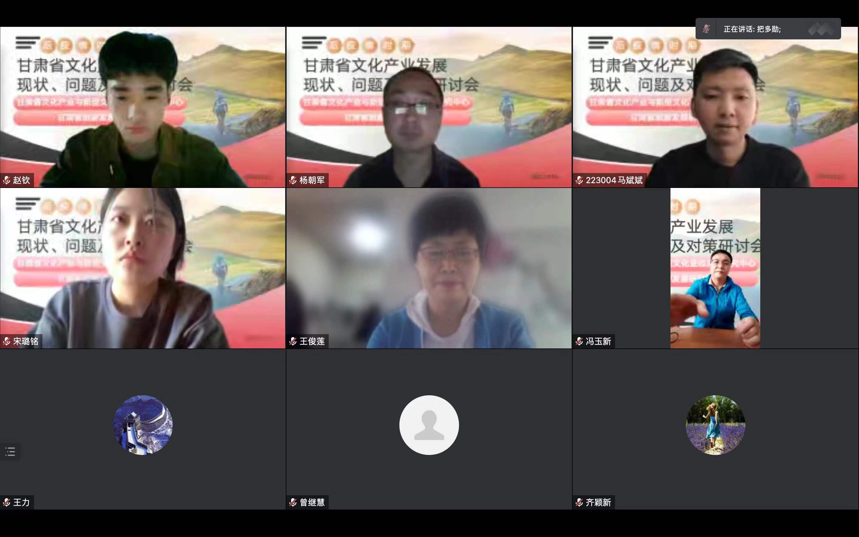 随后,9728太阳集团“丝绸之路文化与旅游产业发展研究”团队老师、甘肃省文化产业与新型文化业态发展中心和甘肃省旅游发展研究院诸位老师以及兰州财经大学的研究生围绕甘肃省文化资源活化与文化产业高质量发展的议题做了交流发言。