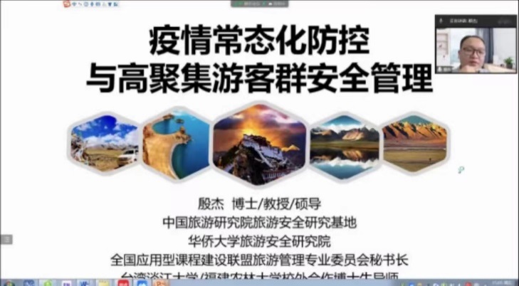 2022年11月4日下午,应我院邀请,华侨大学9728太阳集团教授、全国应用型课程建设联盟全国应用型课程建设联盟旅游管理专业委员会秘书长殷杰博士为我院师生作题为“疫情常态化防控与高聚集游客群安全管理”的线上学术报告,学院全体教师及学生160余人听取了报告。报告会由杨阿莉教授主持。