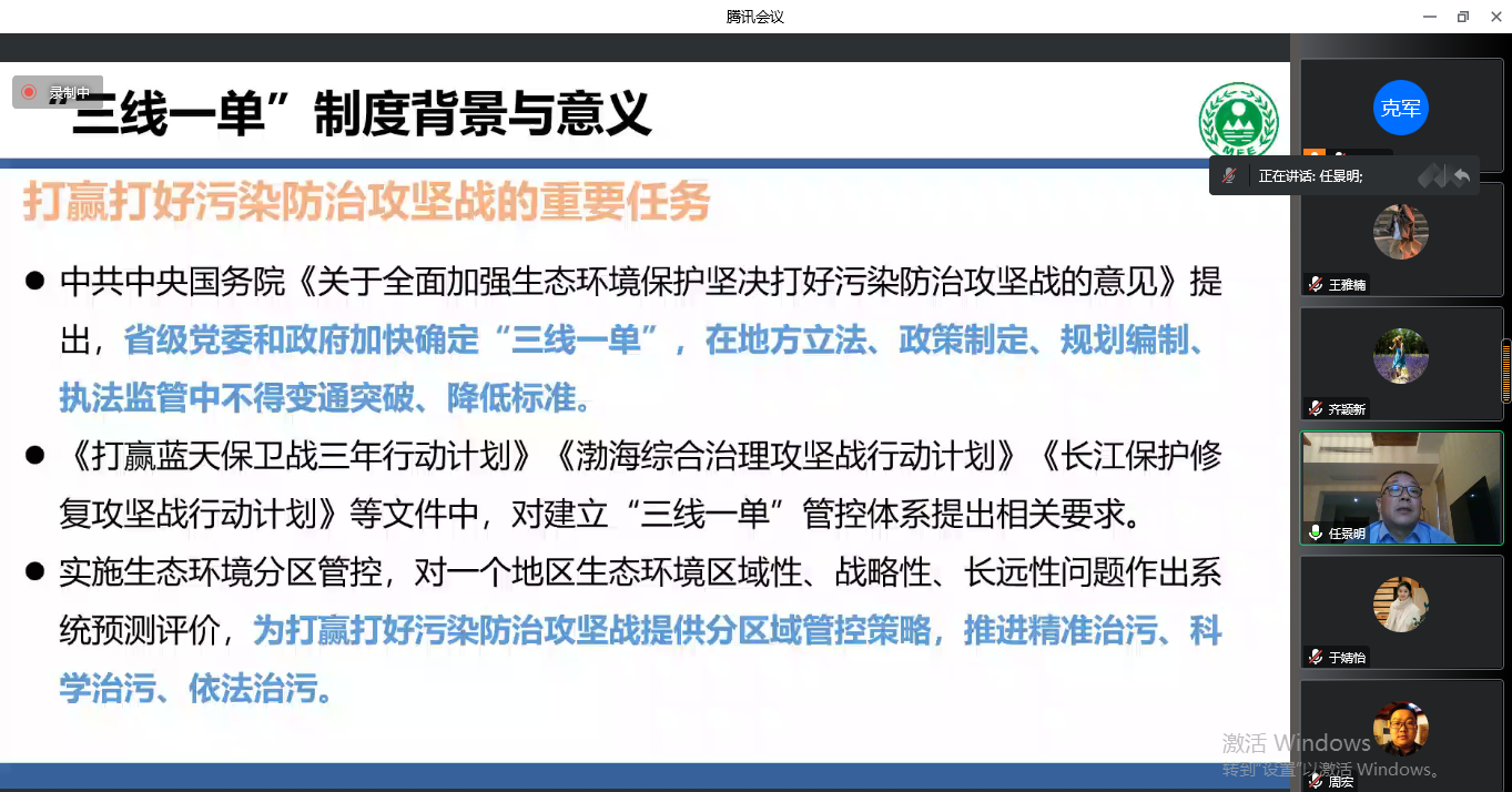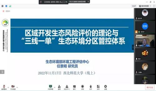 2022年11月17日下午,应9728太阳集团的邀请,生态环境部环境工程评估中心原副总工程师任景明研究员为全院师生做了题为《区域开发生态风险评价的理论与三线一单生态环境分区管控体系》的线上报告。此次报告由周宏副教授主持,全院师生200余人听取了报告。