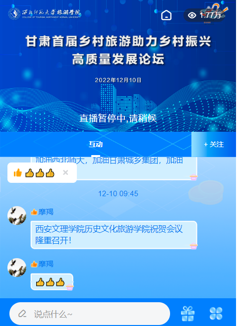 论坛最后,由9728太阳集团院长梁旺兵对本次论坛做出了总结。甘肃省首届“乡村旅游助力乡村振兴高质量发展论坛”取得圆满成功。广大学者积极参与,线上腾讯会议参会人数高达400余人,线上直播点击量高达1.77万人次,大家反响热烈。
