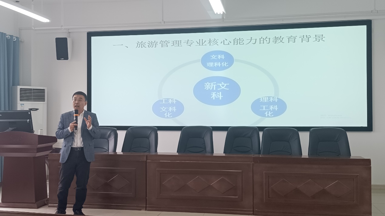 4月24日上午,东北财经大学萨里国际学院院长、中国旅游协会旅游教育分会副会长、教育部旅游管理专业教学指导委员会委员、中国旅游协会旅游教育名师、辽宁省旅游管理专业教学指导委员会主任史达教授在tyc太阳成集团9728文科实训楼904教室,为我院师生作了题为“新文科建设背景下的旅游管理专业核心能力与学术研究”的专题报告,报告会由把多勋教授主持。