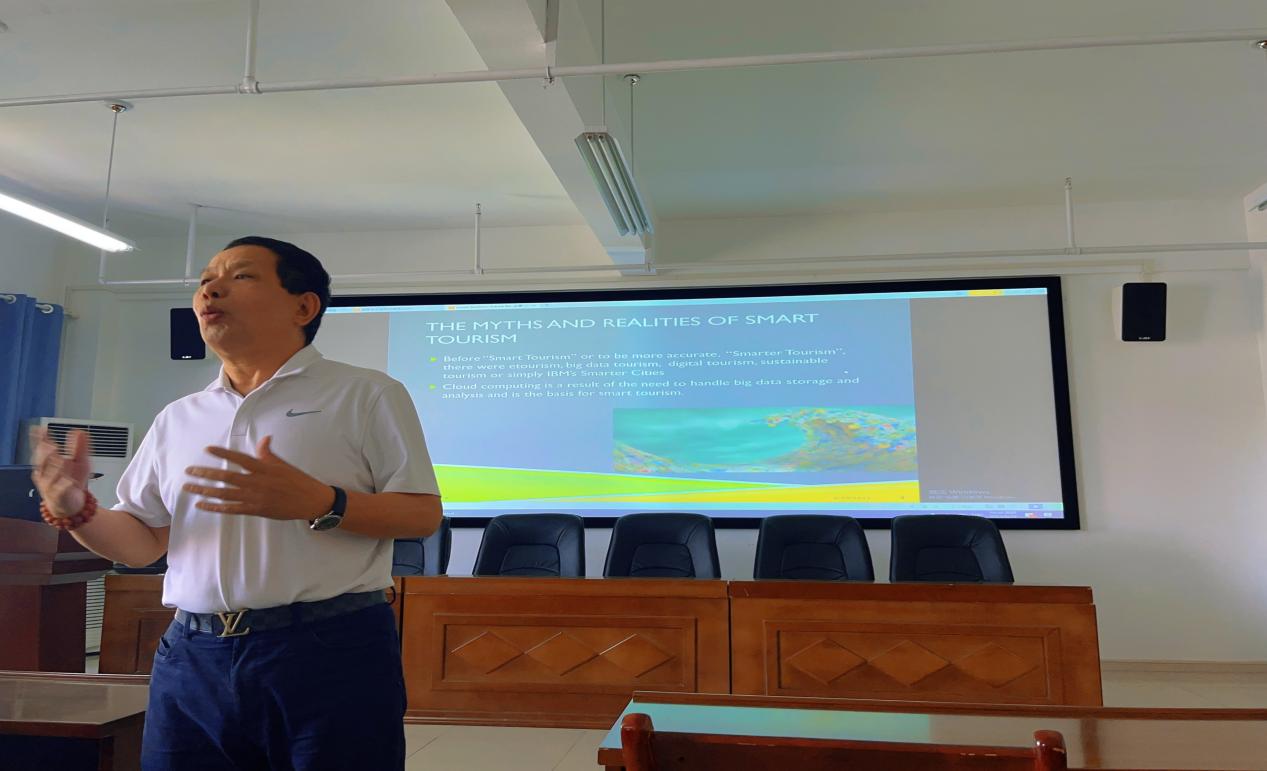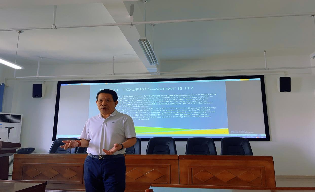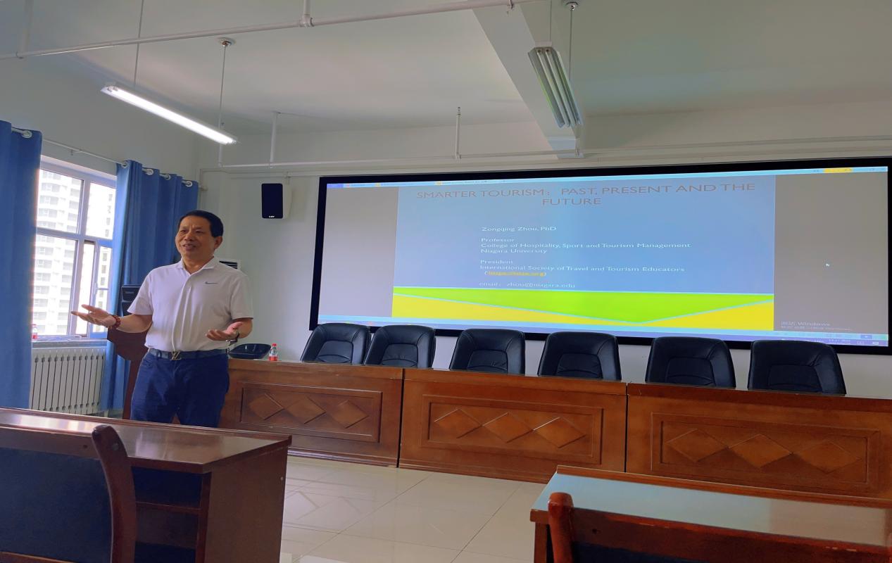 6月29日下午,美国密执安州立大学旅游学博士,美国尼亚加拉大学旅游与酒店管理学院终身教授,International Journal of Hospitality and Event Management杂志顾问编辑,美国尼亚加拉大学电子商务研究中心主任和国际旅游教育工作者协会主席周宗清教授在tyc太阳成集团9728文科实训楼904教室为我院师生作了题为“Smarter tourism:Past, present and the future”的专题报告,报告会由武克军副院长主持。
