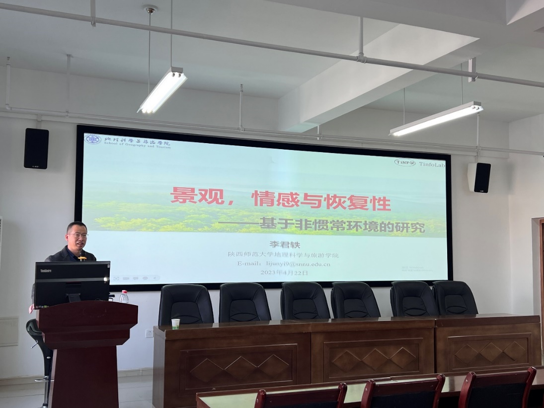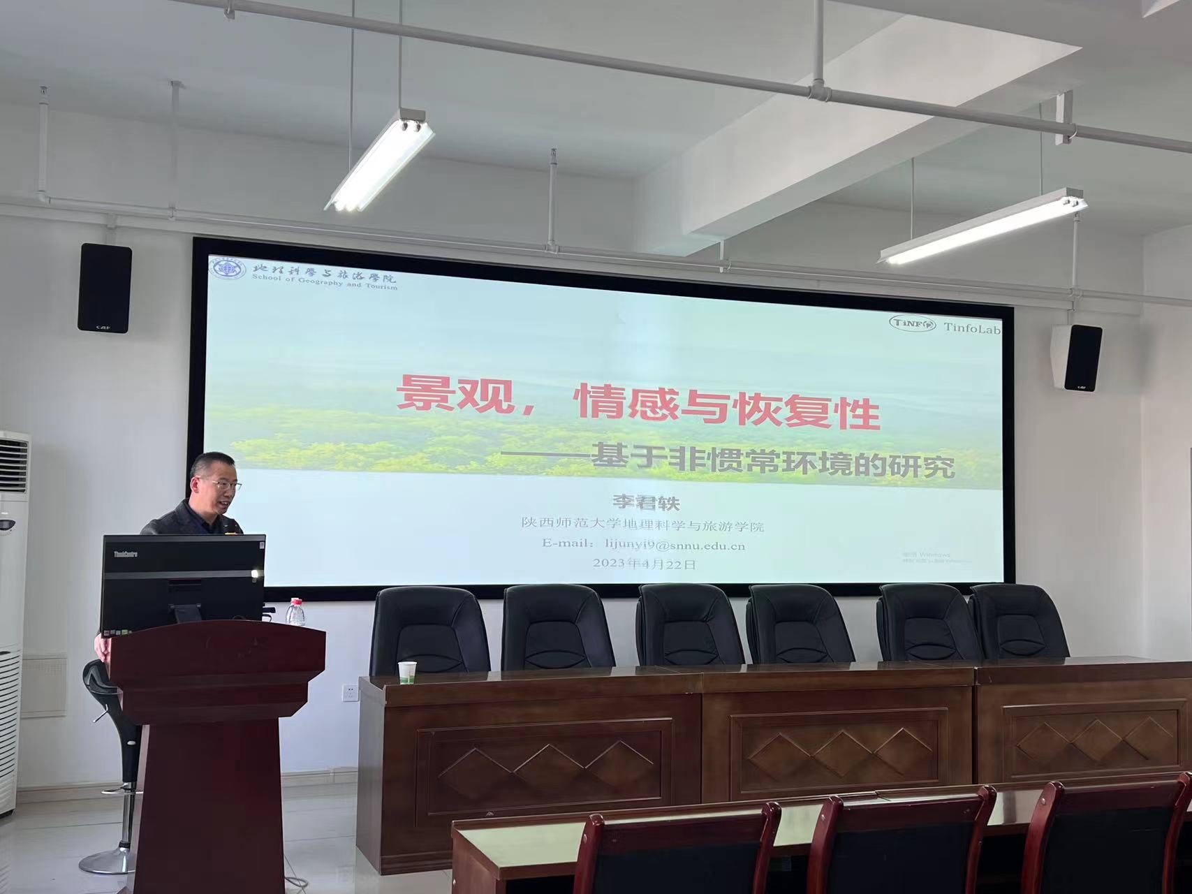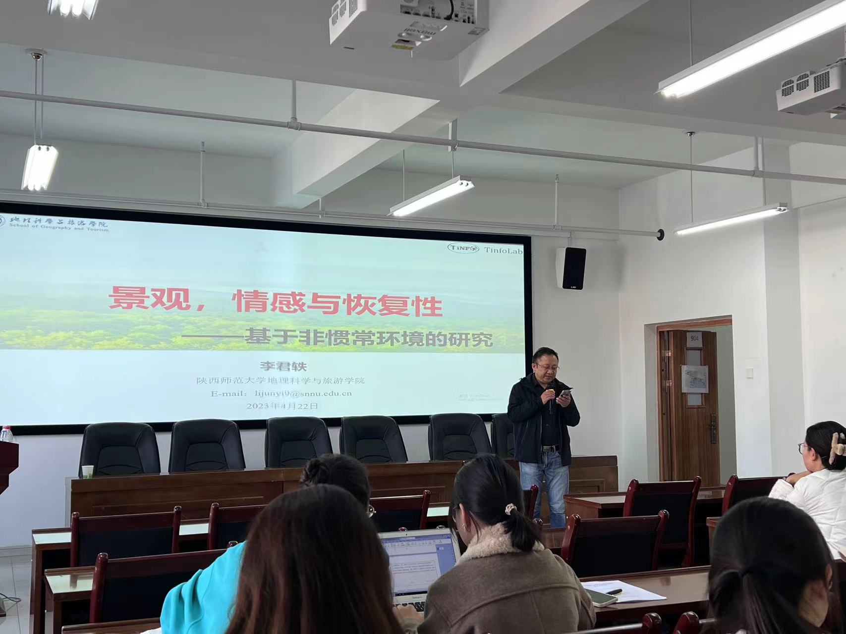 11月9日下午,应9728太阳集团邀请,陕西师范大学地理科学与9728太阳集团院长李君轶教授来我院做题为“景观、情感与恢复性—基于非惯常环境的研究”学术报告,报告会在文科实训楼904会议室举办。此次报告由学院副院长柴亚林主持,相关专业老师、研究生和本科生100余人参加了报告会。
