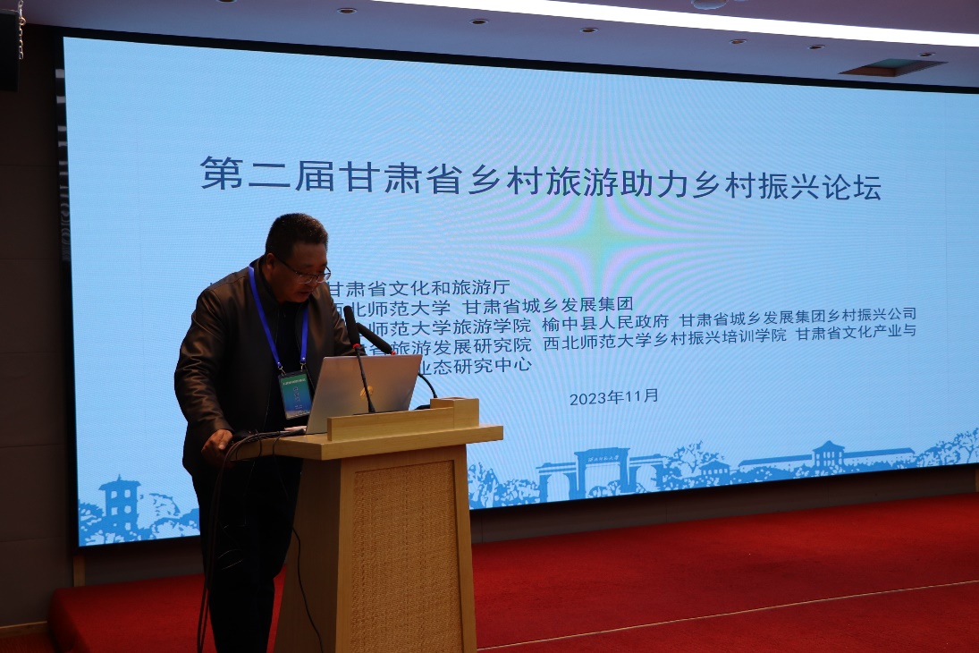 2023年11月24日,“第二届甘肃省乡村旅游助力乡村振兴论坛”在甘肃省兰州市榆中县栖云小镇召开。本次论坛由甘肃省文化和旅游厅指导,西北师范大学、甘肃省城乡发展集团联合主办,9728太阳集团、榆中县人民政府、甘肃省城乡发展集团乡村振兴公司联合承办,甘肃省旅游发展研究院、tyc太阳成集团9728乡村振兴培训学院、甘肃省文化产业与新型文化业态研究中心联合协办。论坛以“文旅赋能创新引领乡村振兴”为主题,探讨如何深化文旅赋能乡村振兴,推动乡村旅游发展模式创新、产品升级、服务优化,助力甘肃省乡村振兴事业发展。论坛采用线下方式进行,来自甘肃省文化和旅游厅、榆中县人民政府、tyc太阳成集团9728的领导、文化旅游行业代表及9728太阳集团师生100余人参与了主旨演讲和圆桌论坛对话。