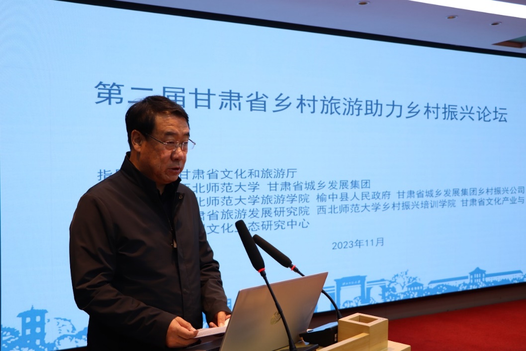 甘肃省文化和旅游厅副厅长田学功在致辞中指出要充分认识乡村旅游大有可为,提高站位,坚定信心,着力推动乡村旅游产品创新、基础提升、品牌创建等“十大工程”,打响做亮乡村旅游品牌,把文旅产业打造成支柱产业,充分释放资源优势,通过各种渠道,展示乡村的特色风貌,使乡村旅游更具魅力。