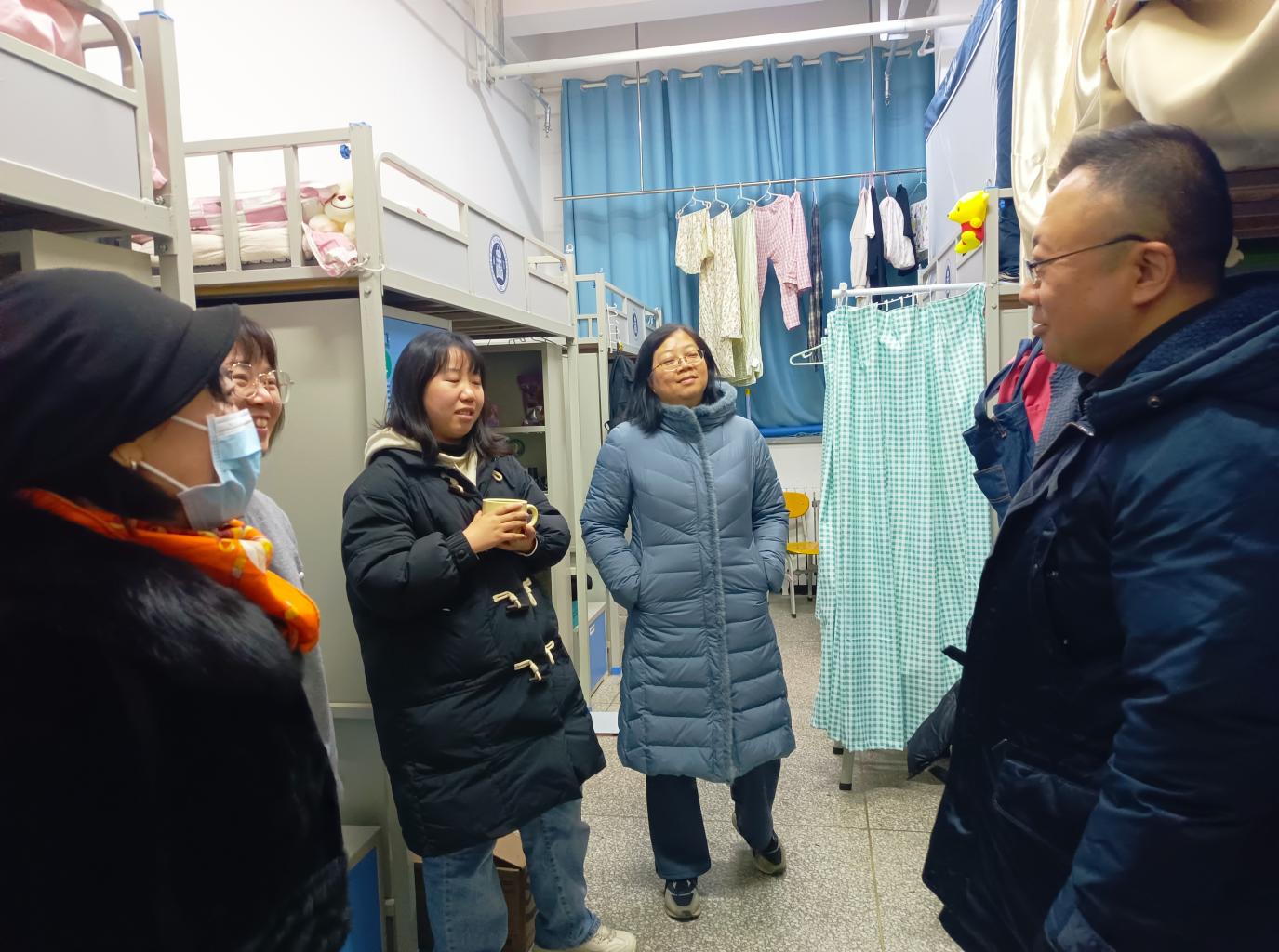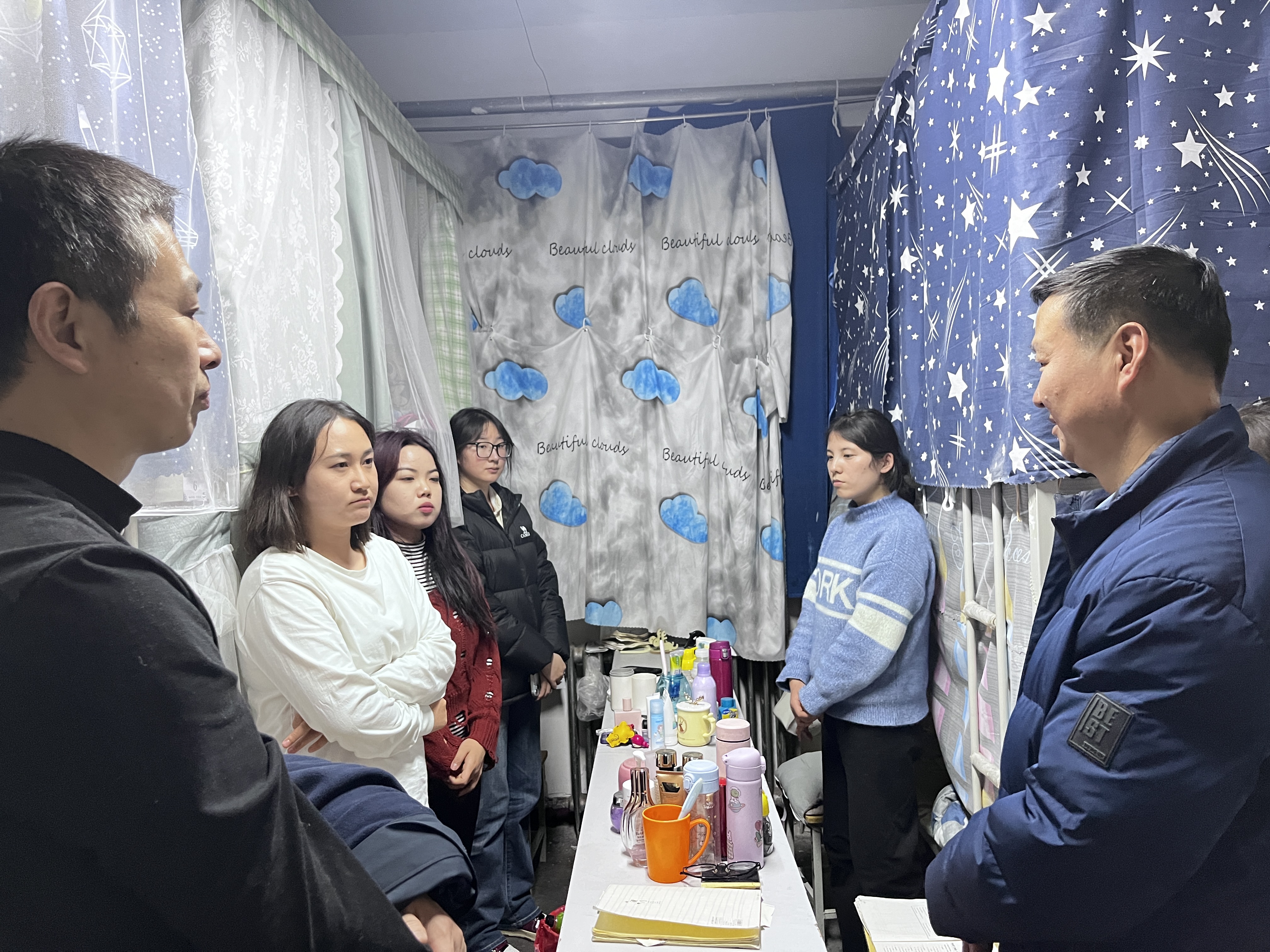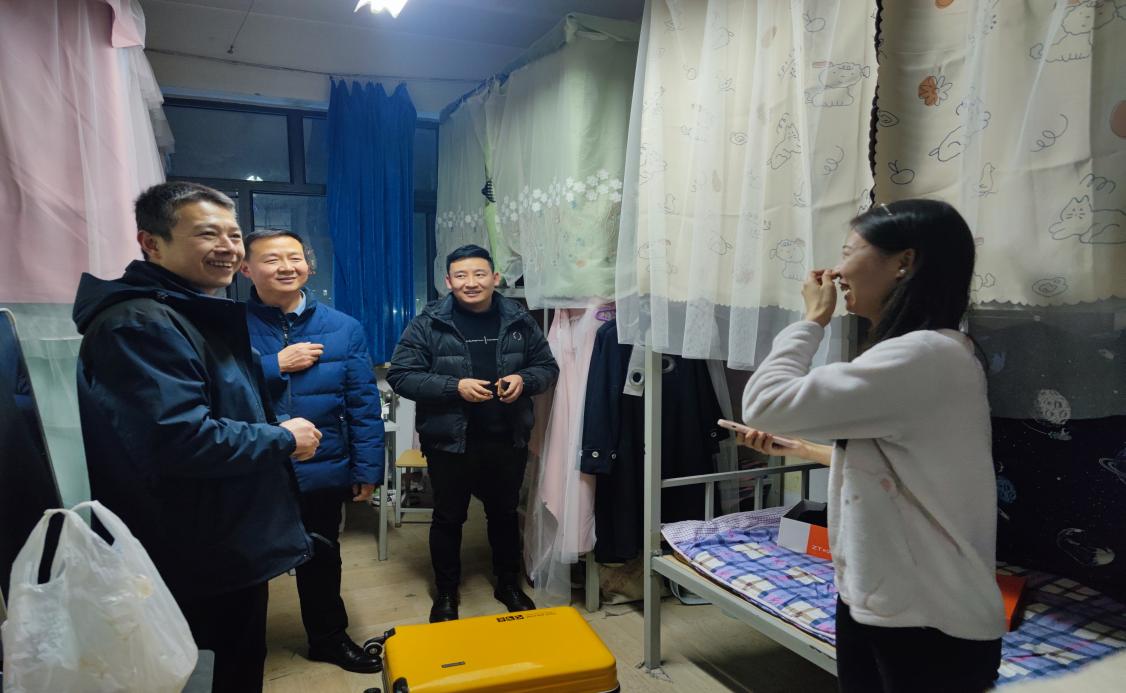 在宿舍走访过程中,老师们与同学们进行了亲切的交流,详细的了解同学们的心理状态与日常生活情况,并对宿舍的卫生状况、安全设施以及住宿环境进行了检查,确保同学们身心健康与外部环境安全,为开学做好充分的准备。