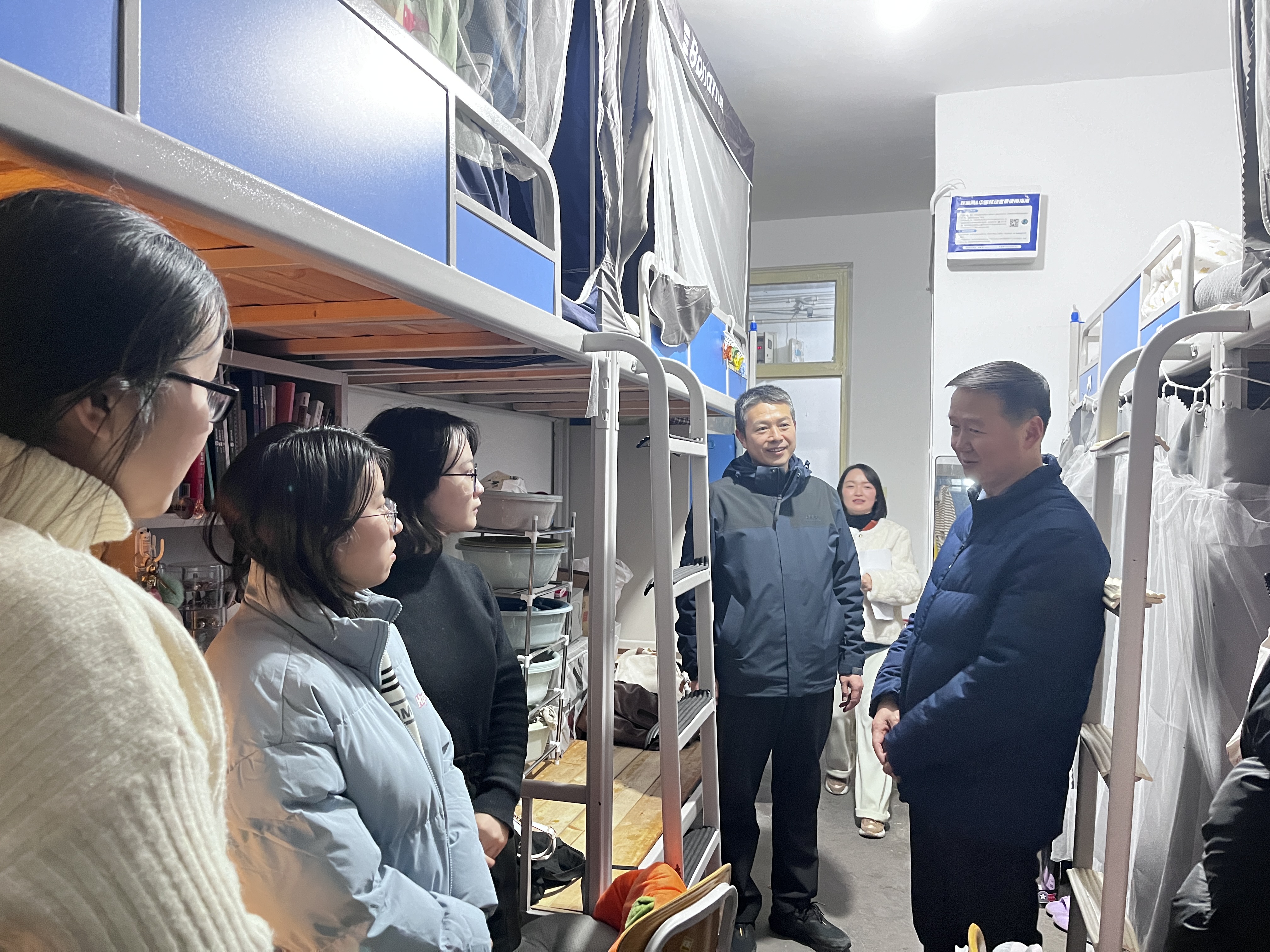 同时,学院领导在走访毕业生宿舍时给予同学们相应的指导和建议,关切地询问了同学们的考研和就业情况,听取了同学们对于复试准备的进展和就业的困惑,并分享了自己的经验和建议,鼓励学生们保持积极的心态,努力为自己的未来奋斗。