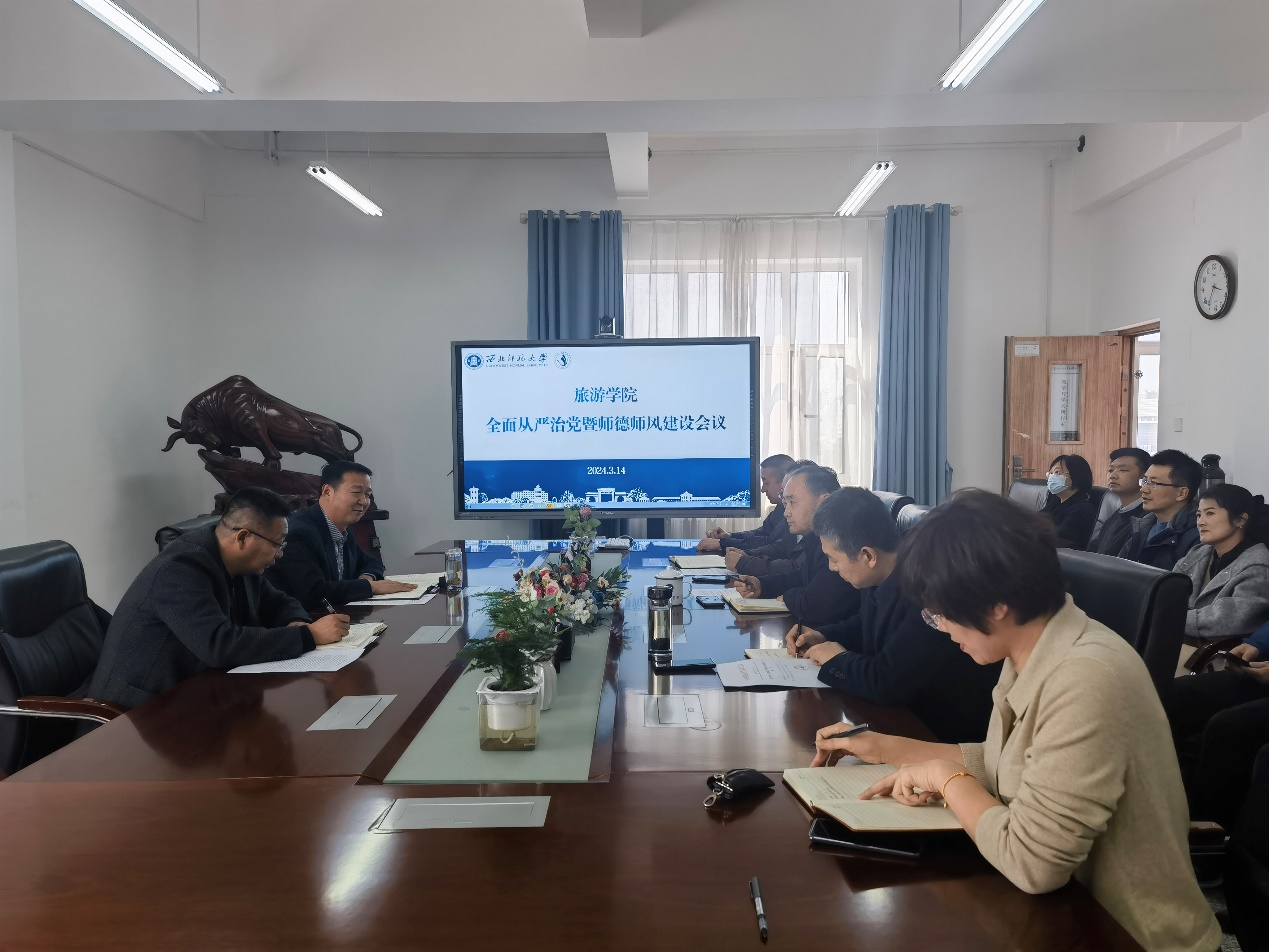3月14日,9728太阳集团在文科实训楼1101会议室召开全面从严治党暨师德师风建设会议,学院领导和全体教职工参加会议。会议由党委书记谢致远主持。