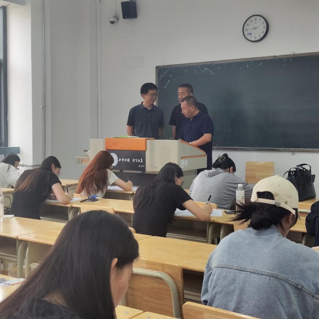 赵兴虎书记一行前往致公楼考点,对本科生的专业考试进行巡考检查,认真检查了监考教师的工作状态,核验考生相关证件,强调了考试纪律的重要性,要求学院监考教师严格遵守监考相关规定,确保考试顺利进行,确保考试过程的严肃性和规范性。