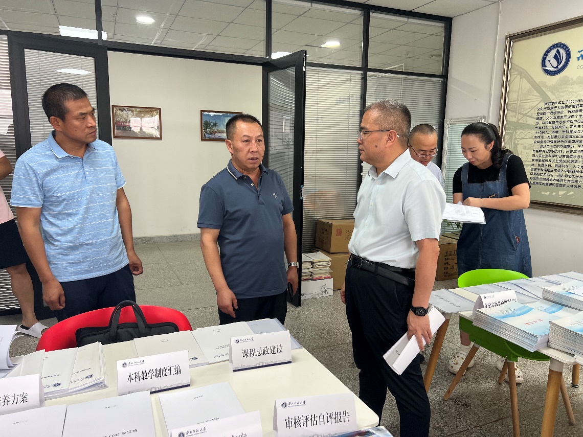 张明军副校长率督导组对学院审核评估自评报告、本科教育教学与人才培养典型案例、本科教育教学管理规章制度、教学运行机制和学术型人才培养体系、各类教学文档、实习实践基地建设、课程教学综合改革及信息化建设、教师课堂教学能力提升、学院教学督导队伍建设、办学特色及育人成效宣传、审核评估应知应会知识掌握等情况进行细致入微地现场检查督导。赵兴虎书记、柴亚林副院长及各系所中心负责人向督导组详尽介绍学院本科教学各方面工作及书面材料具体情况。