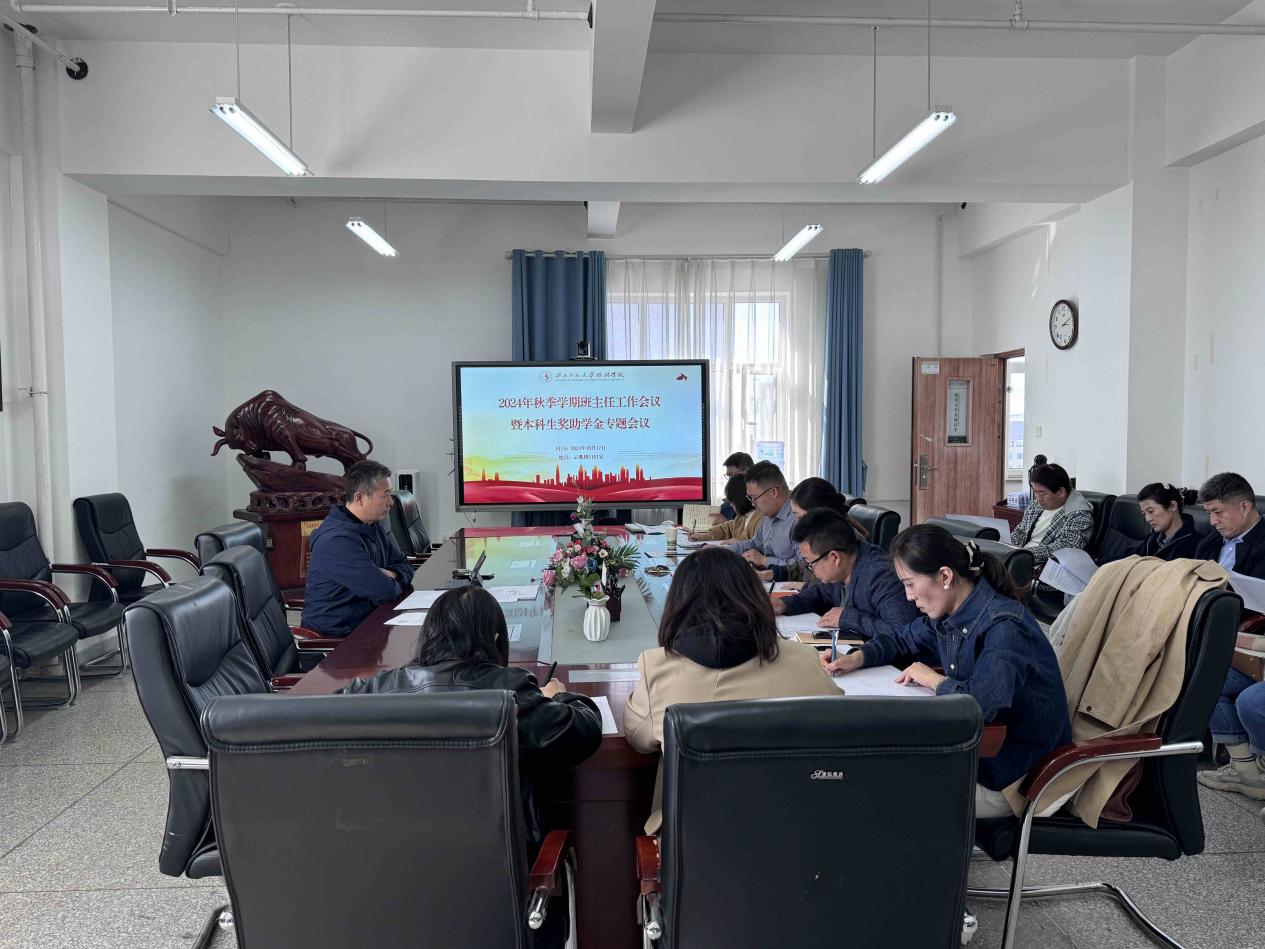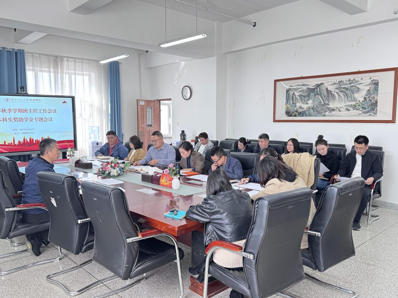 2024年10月17日,9728太阳集团在云衢楼1101室召开2024年秋季学期班主任会议暨本科生奖助学金专题会议。全体本科生班主任和辅导员参会,学院党委副书记戴小武主持会议。