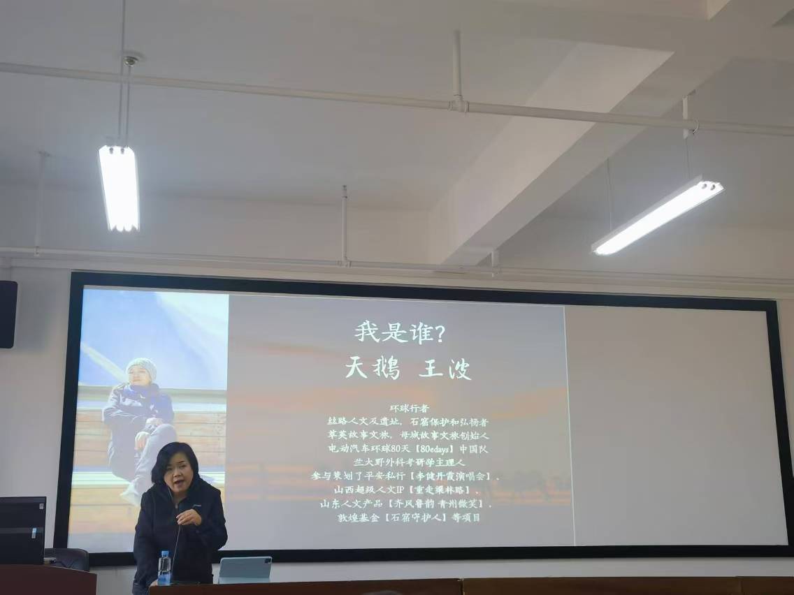 王波女士首先对当前旅游行业发展现状进行了简要介绍,接着阐述了文旅发展的广阔前景:人们的旅游需求逐渐从出境游转向国内游,在国内游市场,生态旅游与人文旅游具有巨大的发展潜力,小而美精而深的亲子研学、沉浸式生态人文旅行已成为生活刚需。基于丰富的行业经验,王波女士为我院师生分享了多个业内成功案例,如:山西人文IP“重走梁林路”、山东人文产品“齐风鲁韵 青州微笑”以及位于意大利博洛尼亚的全球最大农业美食主题乐园FICO Eataly World等。这些案例说明,旅游业的发展必须注重资源的保护、文化的传承和可持续的发展。