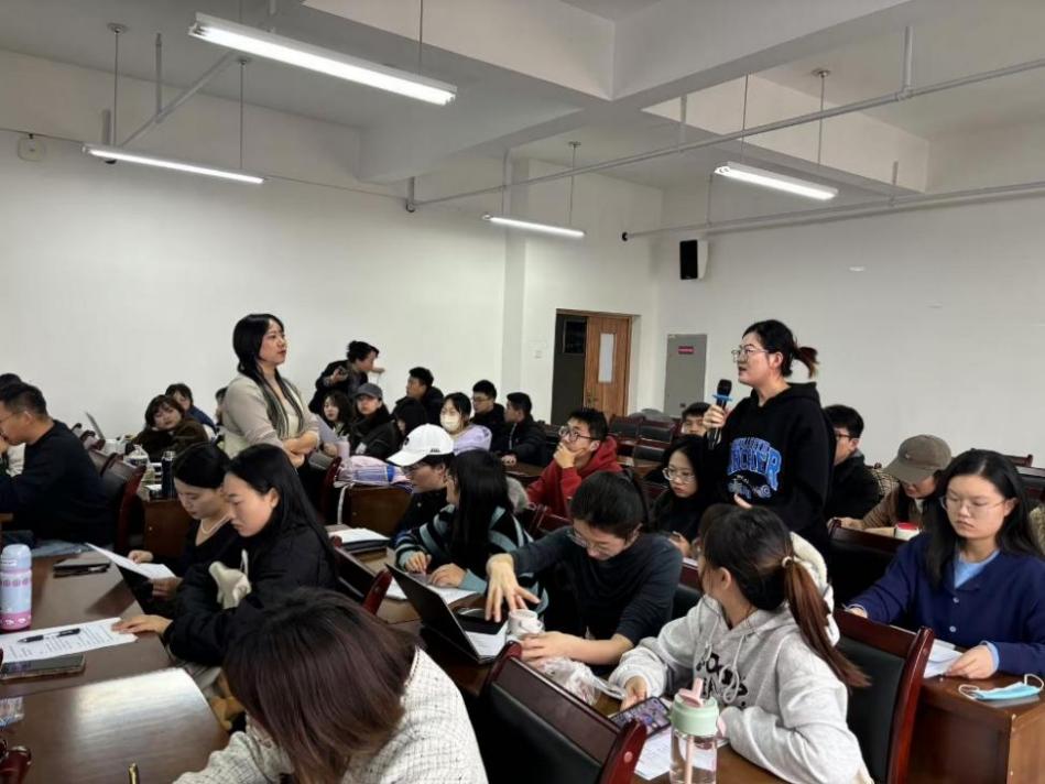 讲座开始,邹老师与同学们进行热情互动,邀请大家畅谈自己对“集市”的见解,同学们通过扫码自主选择课题主题,其中“市集+文旅”“市集+非遗文化“等主题受到同学们的喜爱。随后,邹老师以“青年力为主导”“多元社交”“不限表达的”“创意资源汇集地”四个关键词精准概括了现代市集的特点,凭借日本市集、COSMO商展等案例,对市集文化跨界融合的价值与前景进行了深入挖掘;并从活动视觉的维度,结合东方美学元素阐述市集场景的构建,拓宽了同学们在文旅研究领域的视野,也为其学术研究补充了丰富案例与前沿视角。