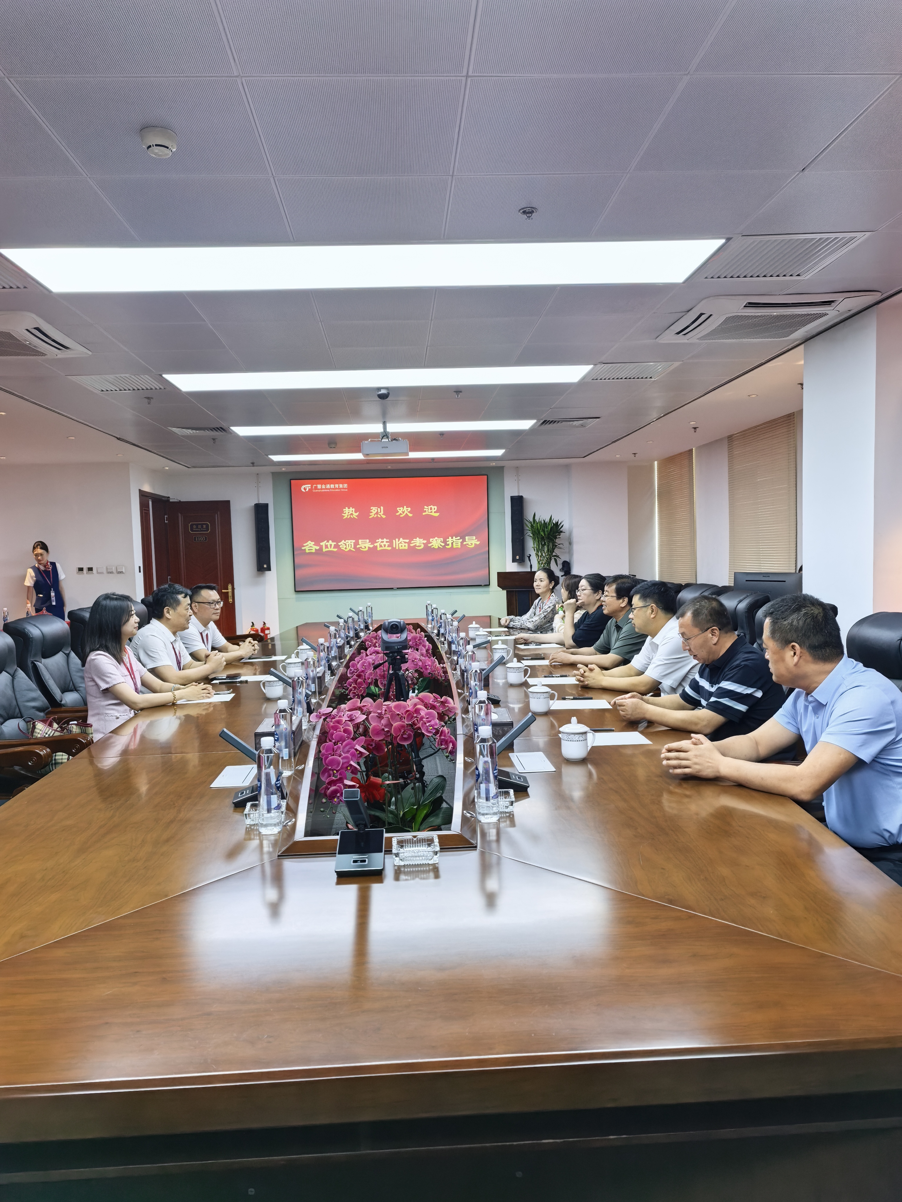 参观结束后,校企双方举行座谈。座谈会上,付晓军总经理介绍了公司的发展历程、业务布局及未来规划。与会人员围绕推动教学资源数字化升级,优化招生、培养、就业全链服务,提升学生就业竞争力进行深入讨论。双方表示,要以此交流座谈为契机,充分发挥校企双方优势,取长补短,推动航空服务艺术与管理专业的高质量发展。