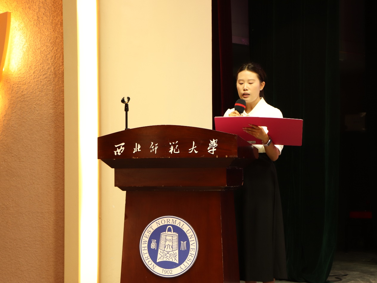 在校生代表2022级旅游管理专业樊佳丽同学分享了她的大学生活感悟。她以绩点4.15、专业排名第一、获国家奖学金及多项竞赛奖项的优异成绩,诠释“学并快乐着”的主动学习态度。同时她建议新生保持好奇、勇于尝试、合理规划时间,在多元平台中挖掘潜能,以知行合一的态度书写无悔青春。