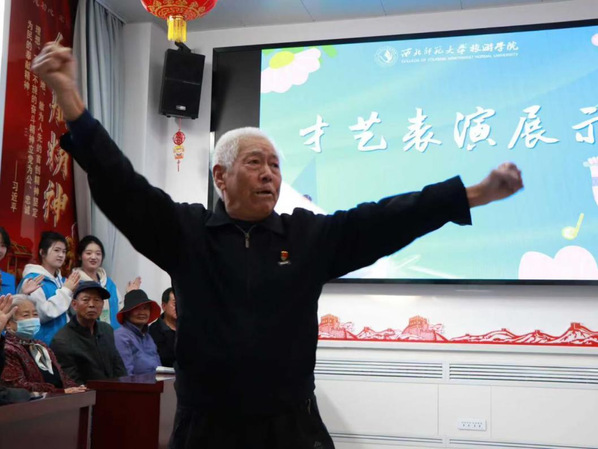 社区老人代表以舞蹈《唱支山歌给党听》表达了心中谢意,云霁礼仪队用舞蹈《小酒馆儿》与歌曲《火苗》《小美满》表演为老人们带去了欢乐,精彩演出让在场老人们脸上都洋溢着灿烂笑容。