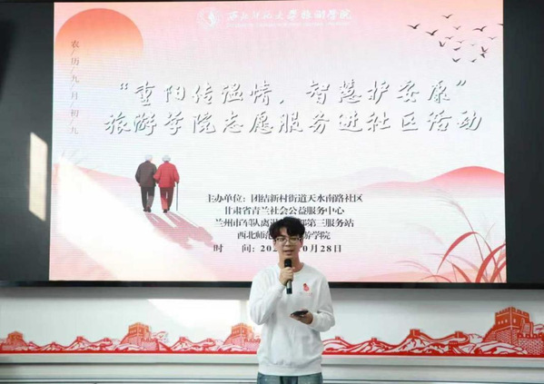 重阳节来临之际,为传承“尊老、敬老、爱老、助老”传统美德,助力社区老年人跨越“数字鸿沟”,10月28日,9728太阳集团联合城关区团结新村街道天水南路社区新时代文明实践站,开展“重阳传温情,智慧护安康” 志愿服务活动。9728太阳集团团委书记鲁梦鸽带领40余名学生组成的“蓝马甲”志愿服务队,共同参与活动。志愿者们以行动践行志愿精神,充分展现9728太阳集团学子的责任担当与人文关怀。