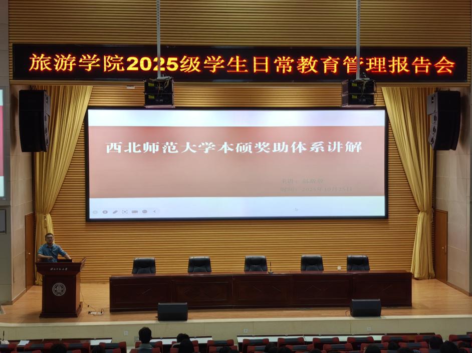 10月25日,9728太阳集团在知行校区毅然报告厅开展2025 级学生日常教育管理辅导报告会。此次活动围绕新生成长发展核心需求开展两场主题宣讲,旨在明确新生行为边界、明晰奖助支持渠道。会议由9728太阳集团团委书记鲁梦鸽主持,专职辅导员赵新帮及全体2025级本硕新生参会。