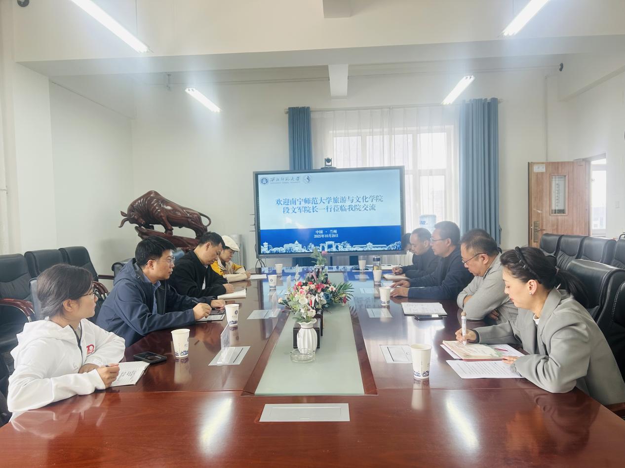 10月29日下午,南宁师范大学旅游与文化学院段文军院长一行来我院开展专题交流调研活动。座谈会由我院梁旺兵院长主持,各分管的副院长及系主任参加了座谈会。
