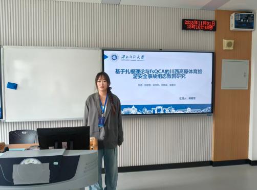 其中,邢傲雪同学分享的题目为《基于扎根理论与fsQCA的川西高原体育旅游安全事故组态致因研究》,获“优秀青年报告一等奖”。收到参会点评专家的一致好评。