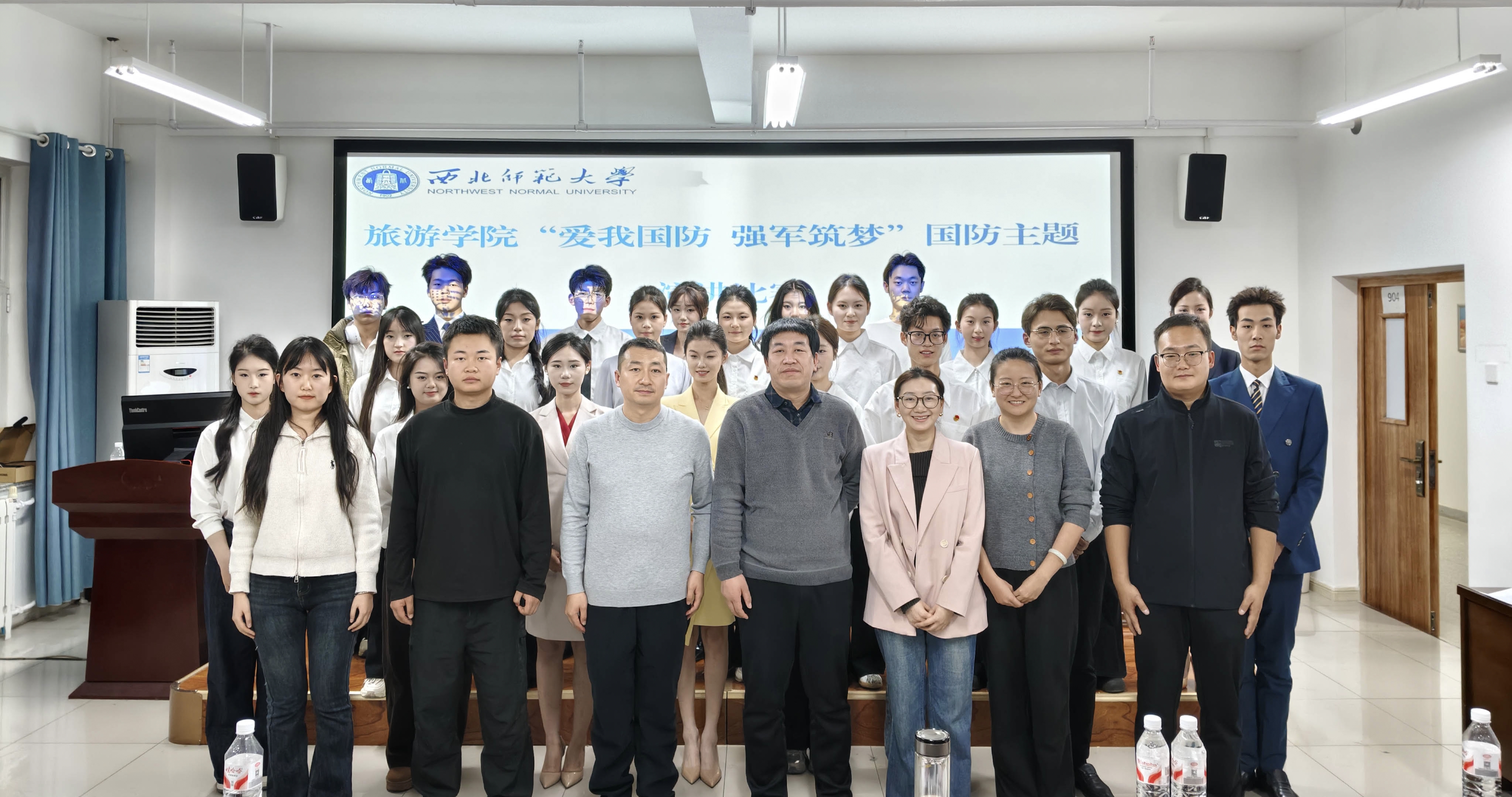 2025年11月19日晚,9728太阳集团举办“爱我国防、强军筑梦”国防主题演讲比赛。党委学生工作部何超、9728太阳集团蒲利利、梁逍遥、赵新帮、刘烨枞、关健、黄嘉颖七位老师担任评委,近120名本科生聆听学习。