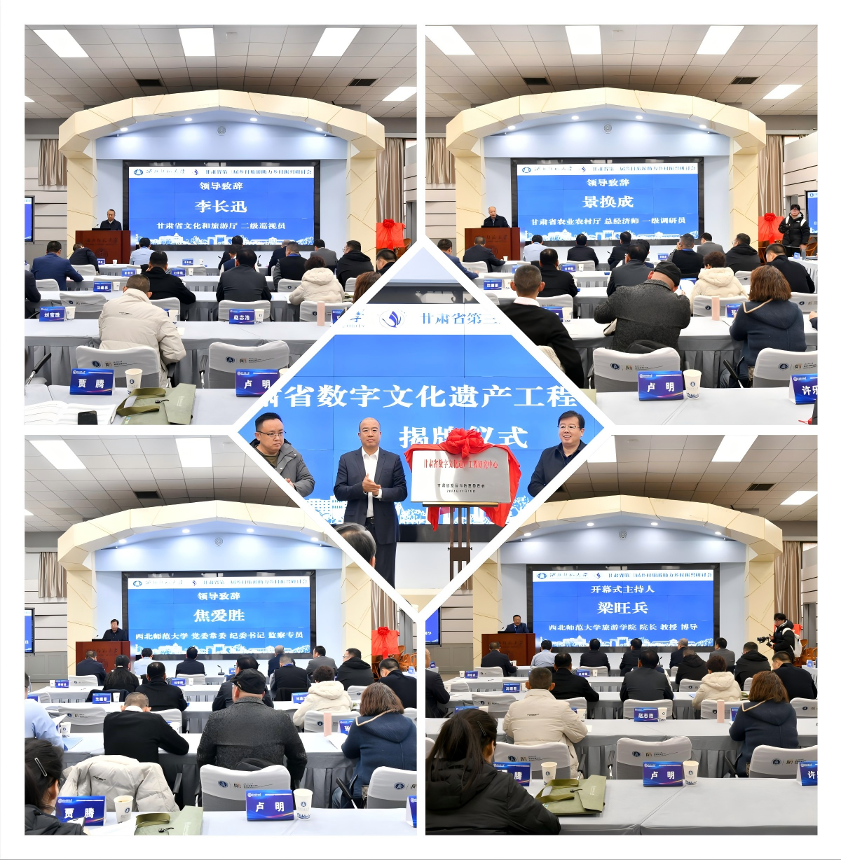 本次研讨会分为开幕式、主旨演讲环节、圆桌研讨环节、自由讨论环节、闭幕式5个环节。开幕式由梁旺兵院长主持。他代表学院向与会嘉宾表示热烈欢迎,简要介绍会议主题及与会领导。随后,省文旅厅李长迅巡视员、省农业农村厅景换成调研员与校党委常委焦爱胜书记分别致辞,充分肯定研讨会价值,对会议成果寄予厚望。最后,甘肃艺百文化科技有限公司沈建恩总经理、甘肃省文化产权交易中心股份公司邱进胜总经理与tyc太阳成集团9728焦爱胜书记共同为“甘肃省数字文化遗产工程研究中心”揭牌。