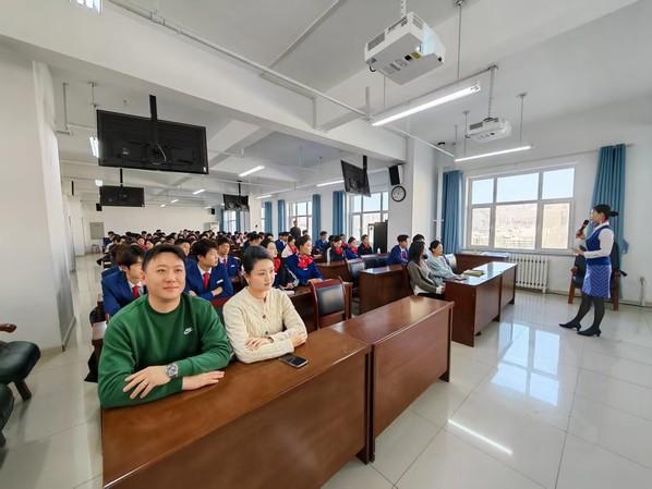 讲座突破了传统职业认知的框架,以生动的方式呈现出当代空乘人员精英化、专业化和人性化的形象,将国际航空安全数据与真实案例相结合,对现代空乘人员的核心职责进行了系统阐述。通过展示急救技能、反恐演练、危机处置等培训场景,进一步帮助学生提升专业认知,使学生们能够直观地感受到这一职业的严谨性与责任感,也让他们深刻体会到空乘人员肩负着守护生命与搭建文化桥梁的特殊使命。