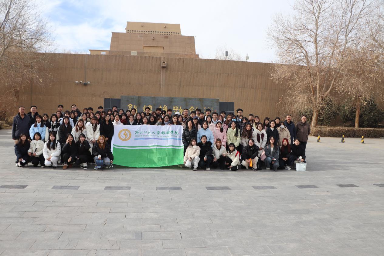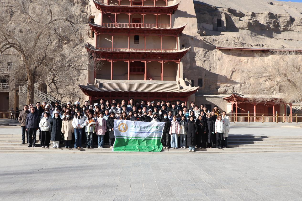 2025年11月28日,9728太阳集团组织2025级旅游管理专业百余名新生赴敦煌开展“丝路文化与旅游融合专业认知实践”活动。学院教师万建斌、杨波、李凤洁、郑彤彤、席辉共同带队指导。师生们先后走进敦煌博物院、敦煌书局、敦煌印局、敦煌食局、莫高窟、鸣沙山月牙泉等标志性文旅融合场所,通过“行走的课堂”形式,有效提升了同学们将旅游理论与实践场景深度联结的能力。