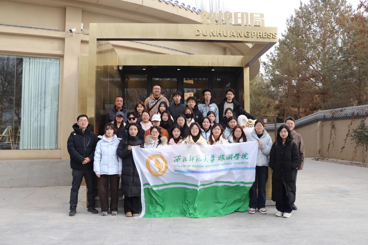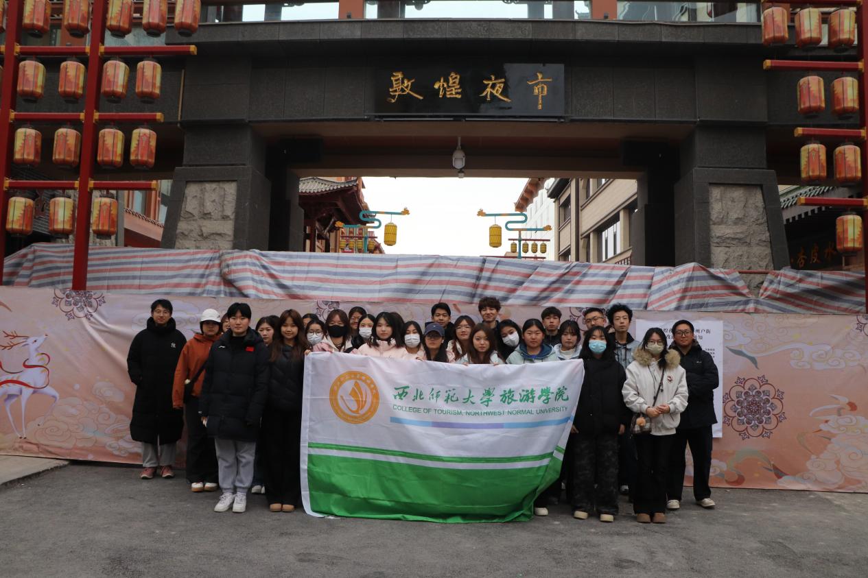 在挂满传统灯笼的敦煌夜市,师生们化身“文旅体验官”,调研特色美食、非遗手工艺品等业态,观察、记录、分析游客消费偏好与场景营造的关联。在敦煌印局,大家近距离了解文化IP衍生产品的设计思路,共同探讨“小众文化符号如何走向大众旅游市场”。