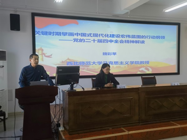 魏彩苹教授围绕二十届四中全会概述,《十五五规划建议》解读,落实教育强国建设、贯彻落实全会精神三个方面内容,对二十届四中全会精神进行了系统阐述。报告通过扎实的史料和深刻的解读,为师生党员精准理解全会精神提供了有力指导。