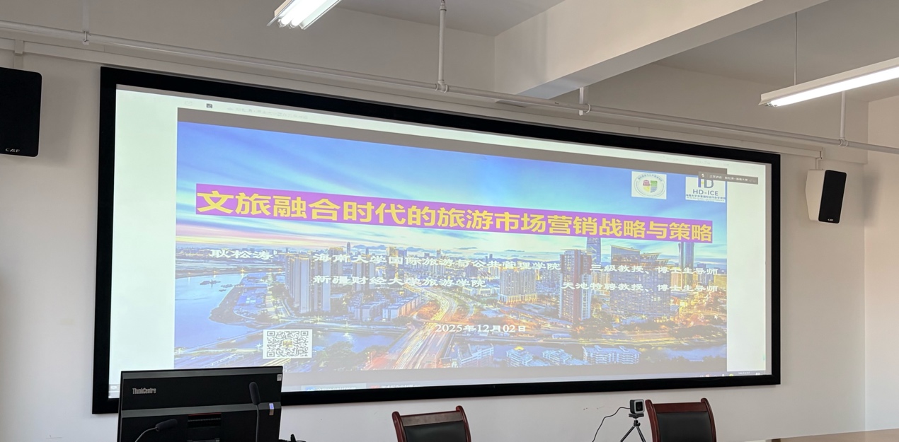 2025年12月2日,海南大学国际旅游与公共管理学院耿松涛教授应邀在我院904学术报告厅,为师生作了一场题为《文旅融合时代的旅游市场营销战略与策略》的线上专题学术报告。本次报告会由我院刘玥老师主持,学院100余名师生积极参与学习。